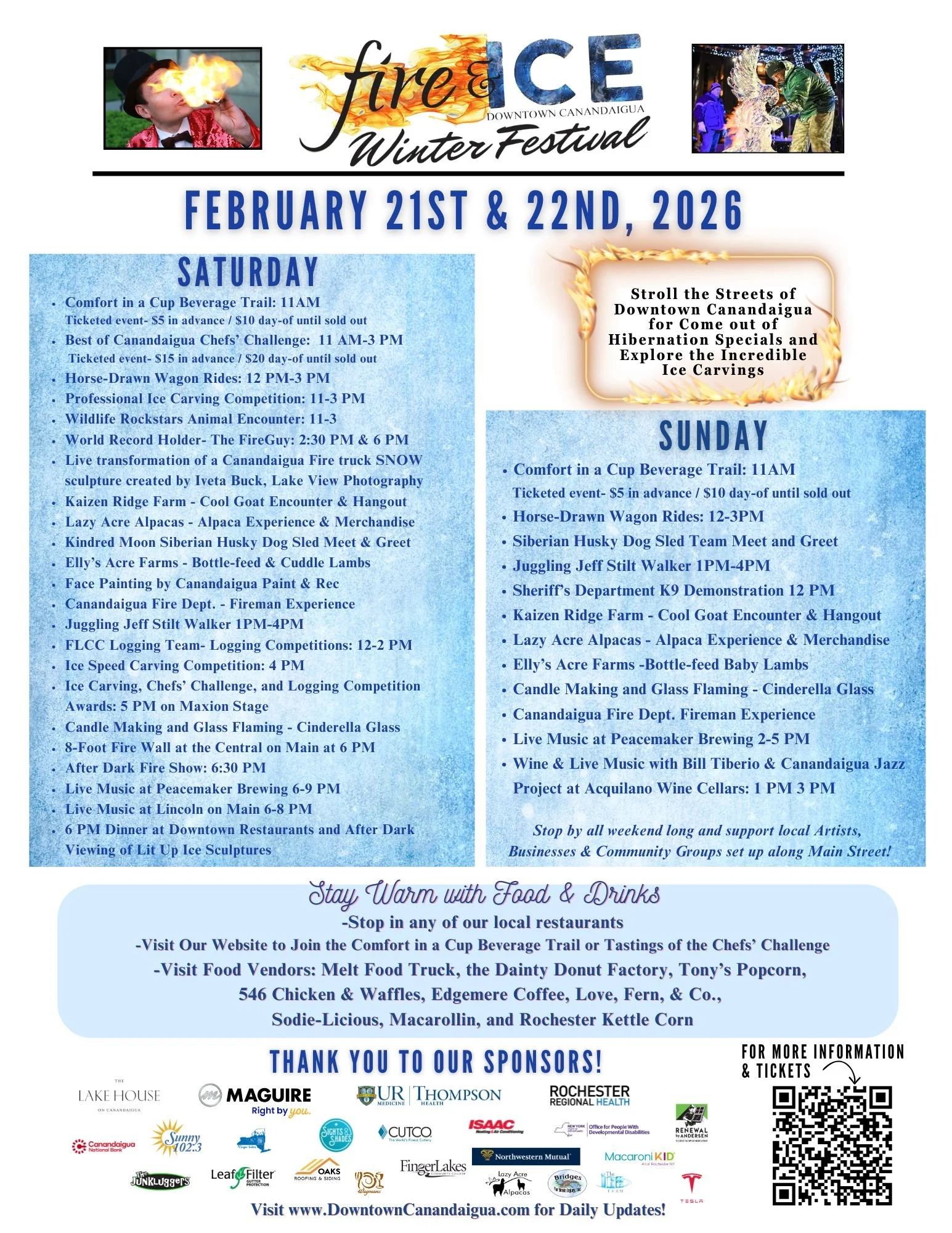 Experience the annual Comfort in a Cup Beverage Trail and the Best of Canandaigua's Chef's Challenge. Tickets are selling fast and there are a limited supply, get yours today!